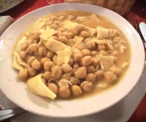 This dish has not disappeared. In central and southern Italy, lagane –pasta made from durum wheat semolina in wide stripsare– still cooked with chickpeas: lagane e ceci in Basilicata, lagane e cicire in Calabria, ceci e laganelle in Campania.