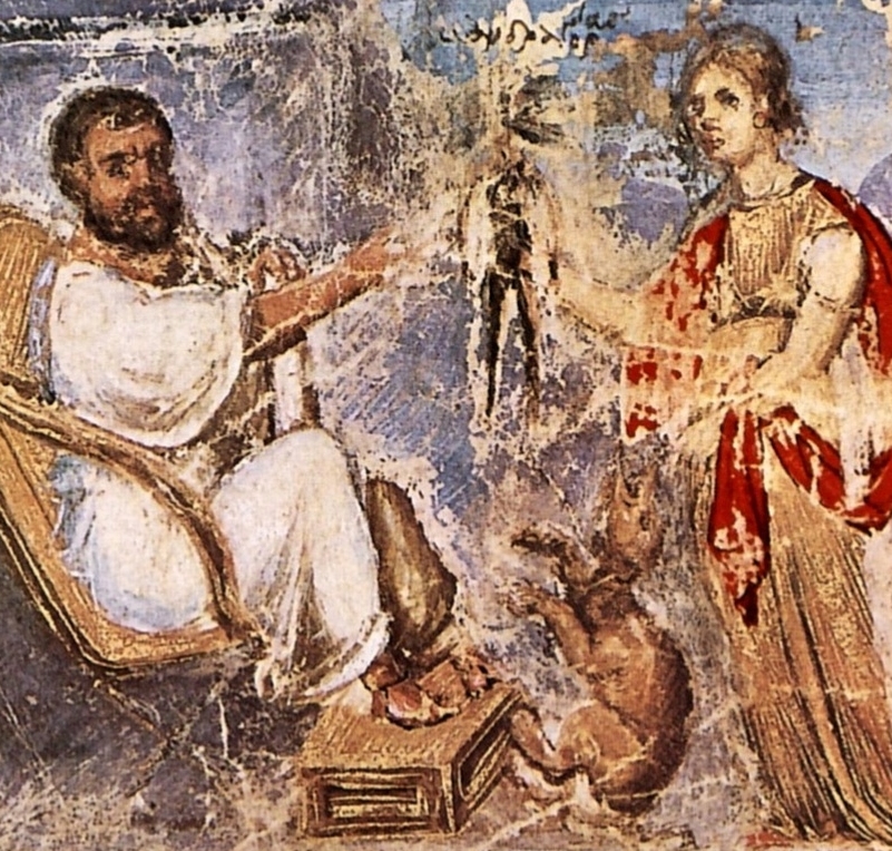 La baaras de Josèphe n’est pas formellement la mandragore: Josèphe ne l’identifie pas comme telle, et aucun auteur grec ne décrit ce rituel pour la mandragore elle-même.[12] Mais les deux plantes partagent assez de traits pour que le Moyen Âge opère le transfert. Dès le début du 6e siècle, la scène se cristallise dans l’iconographie: le célèbre Codex Vindobonensis (Vienna Dioscorides), manuscrit de Dioscoride copié vers 512 à Constantinople, représente déjà une mandragore arrachée, tandis qu’un chien agonisant, gueule béante, gît à ses pieds.[13]