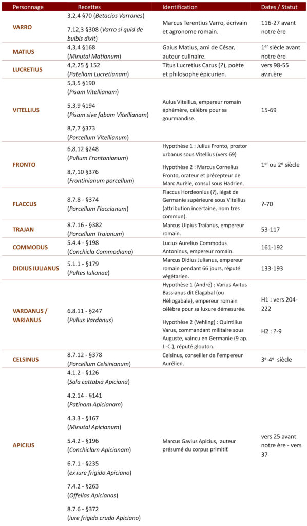 [4] Voir le tableau des personnages cités dans les recettes du De re coquinaria.