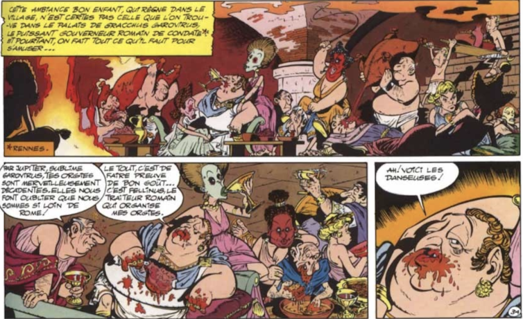 Cette riche étude permet de faire la part entre la réalité historique et les fantasmes souvent associés à l’orgie romaine, cette prétendue débauche de nourriture, popularisée par le film Fellini Satyricon en 1969 et par la bande dessinée Astérix chez les Helvètes.