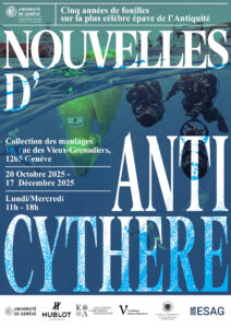 L’exposition Nouvelles d’Anticythère est consacrée aux recherches menées au large d’Anticythère entre 2021 et 2025 par l’Unité d’archéologie classique de l’Université de Genève, en collaboration avec le Ministère grec de la Culture. C’est sur cette île qu’a été retrouvée en 1900 l’épave d’un important navire marchand ayant fait naufrage au premier siècle avant notre ère. Cette exposition vous propose de plonger sur le site de l’épave et de découvrir les aspects qui font de ce navire un sujet si crucial pour la recherche archéologique à l’échelle de la Méditerranée entière.